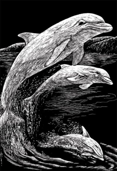 Přiloženým škrabacím perem vyškrábejte linky předtištěného obrázku. Fantazii se meze nekladou, proto je možné vyškrábat i černá místa bez potisku a dodat obrázku osobitý rámeček.