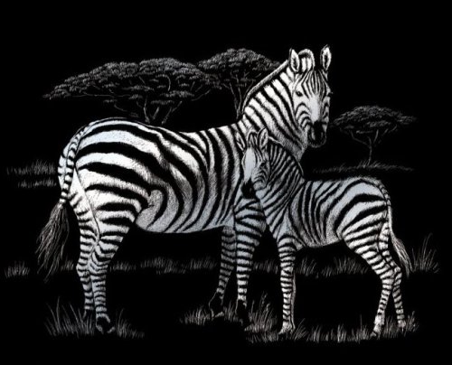 Škrabací obrázky probouzí kreativitu a nadšení a nejen malé výtvarníky zaměstnají na dlouhé hodiny. Papír je potažený černou vrstvou skrývající podklad se stříbrným efektem.