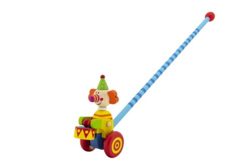 Při pohybu strkadla se barevný klaun krásně roztančí, funguje na oba směry, dřevěné. Rozměry výrobku 60 x 10 x 8 cm. Vhodné pro děti od 1 roku.