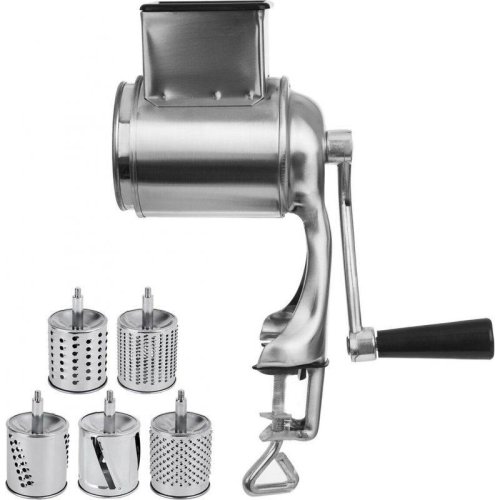 Mlýnek s 5 nástavci, který pomůže snadno nastrouhat na jemno strouhanku, piškoty, ořechy, mandle, tvrdý perník, sýr nebo okurky na plátky .