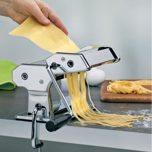 Vyrobte si originální domácí těstoviny přímo ve vaší kuchyni. Strojek na těstoviny Antonietta je vyroben z nerezové oceli. Válečky jsou z chromové oceli s vysoce kvalitní povrchovou úpravou. Strojek má protiskluzový podstavec a díky nastavitelnému svěráku jej stabilně připevníte ke kuchyňské lince nebo stolu. Velmi jednoduchá manipulace a použití. Z pohodlí domova tak jednoduše zvládnete připravit lasagne, fettucine nebo špagety. - materiál: nerezová ocel/chromovaná ocel- šířka těsta až 14,5 cm- 9 různých nastavení: 0,3 - 3 mm- 3 varianty: lasagne, fettuccine, špagety- značka: KELA