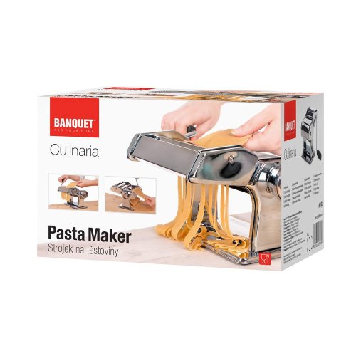 Strojek na těstoviny Banquet CULINARIA, ruční strojek na přípravu těstovin, rozválí těsto o max. šířce 14 cm v devíti různých tloušťkách. Nastavení šíře nudlí cca 2 a 6 mm.