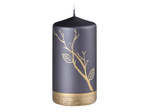 Strom s listy, Válec 75x140mm metal mat černo-zlatá svíčka