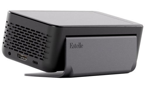 Estelle One je vybaven 6" dotykovým displejem pro intuitivní ovládání a běží na operačním systému Android 12, což umožňuje přístup k široké škále aplikací z Google Play Store. Zařízení podporuje připojení přes Wi-Fi a 4G LTE díky integrovanému slotu na SIM kartu, což zajišťuje flexibilitu při streamování obsahu i na cestách. Ozvučení zajišťují stereo reproduktory s celkovým výkonem 5 W. Díky technologii Bluetooth lze přehrávat audio z projektoru pomocí bezdrátových reproduktorů či sluchátek, ale také přehrávat hudbu z mobilních zařízení v projektoru. Samozřejmostí je pak možnost bezdrátového zrcadlení ze smartphonů a tabletů. Mezi další výhody patří slot pro microSD kartu a integrovaný stojánek, který umožňuje pohodlné nastavení do požadovaného úhlu. Projektor je možné umístit také na stěnu či stativ. Přítomný port USB-C podporuje napájení Power Delivery.