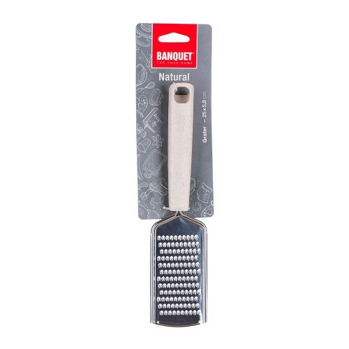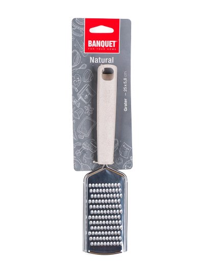 Struhadlo NATURAL je vyrobeno z nerezavějící oceli a je určeno pro profesionální i domácí použití. Struhadlo je opatřeno praktickým očkem pro možnost zavěšení, snadno se udržuje, lze mýt v myčce na nádobí. Řada kuchyňského náčiní NATURAL splňuje náročné požadavky profesionálů a je vhodná i pro domácí použití. Jednoduchý funkční design zabezpečuje nadčasovost a dlouhou morální i kvalitativní životnost všech výrobků. Držadlo je z polypropylenu a pšeničných otrub.