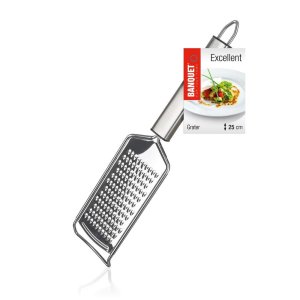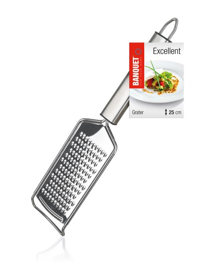 Struhadlo EXCELLENT z nerezové oceli, je praktickým pomocníkem pro strouhání zeleniny a mnoha dalších surovin. Držadlo je opatřeno praktickým očkem pro možnost závěsu.