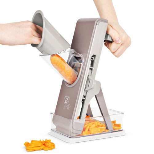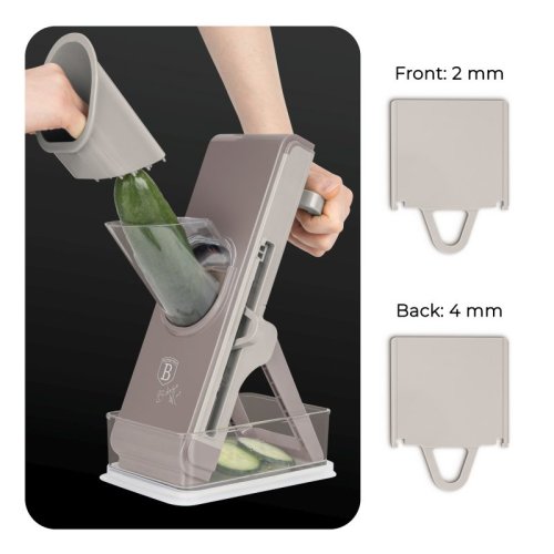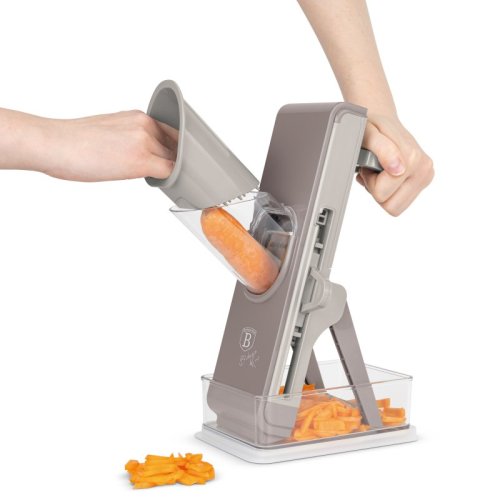 Tento multifunkční kráječ zeleniny v elegantní krémové šedohnědé barvě je praktickým pomocníkem pro každodenní vaření. Díky třem vyměnitelným čepelím z nerezové oceli snadno a rychle nakrájíte různé druhy zeleniny podle potřeby. Součástí je také praktický úložný tácek, který zachytí nakrájené kousky a udrží vaši kuchyň čistou.