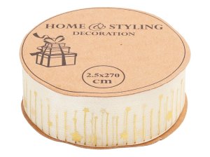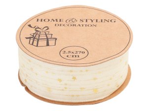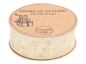 Stuha 2700x25mm potisk zlatý hvězda, houslový klíč s notami box mix, krémová, zlatá