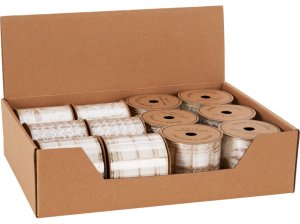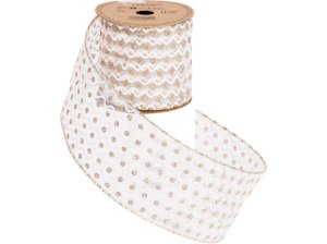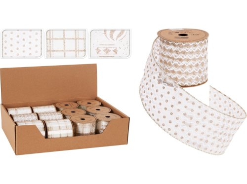 Stuha 2700x63mm potisk mix box, bílá, zlatá s glitrem