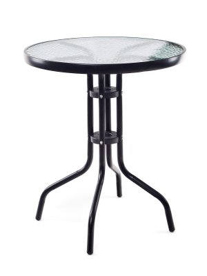 Kovový stolek se skleněnou deskou v černém provedení je vhodný všude tam, kde potřebujete větší stabilní rovnou plochu. Stolek je lehký, snadno se s ním manipuluje. Stolek využijete na zahradě, terase nebo balkónu.
