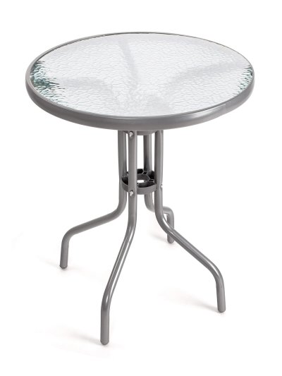 Kovový stolek se skleněnou deskou ve stříbrném provedení je vhodný všude tam, kde potřebujete větší stabilní rovnou plochu. Stolek je lehký, snadno se s ním manipuluje. Stolek využijete na zahradě, terase nebo balkónu.