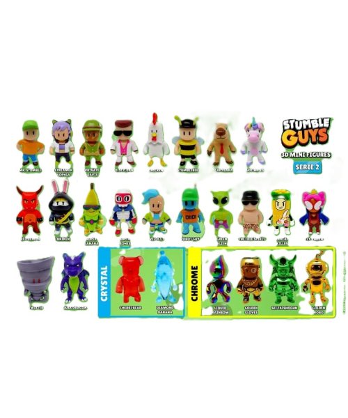 "NASBÍREJTE JE VŠECHNY! Vstupte do světa Stumble Guys s našimi exkluzivními akčními figurkami! V sadě jsou vždy 3 figurky. Figurky jsou 5 cm vysoké. Ať už jste oddaný fanoušek nebo teprve objevujete kouzlo Stumble Guys, zde máte šanci oživit toto vzrušení nabité akcí."
