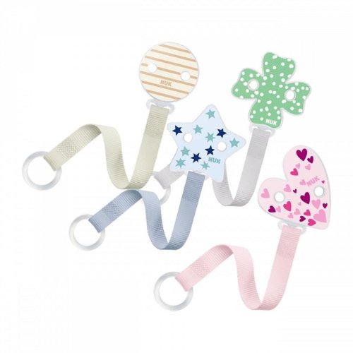 Veselá, barevná stužka na dudlík NUK s flexibilním kroužkem. Díky sponě dudlík nespadne na zem a nezašpiní se a neztratí se. Má snadné použití a je vyrobena tak, aby se dala připnout k dětskému oblečení. Určeno pro děti od prvních dnů života. Stužka je vhodná i na dudlíky bez kroužku díky natahovacímu silikonovému kroužku. Systém klipu je bez ostrých hran pro otevírání a zavírání jednou rukou.