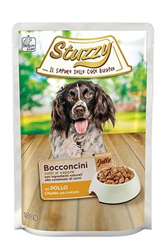 Kapsička pro psy Stuzzy Dog Adult je plná kousků masa vařeného v páře v lahodném želé.