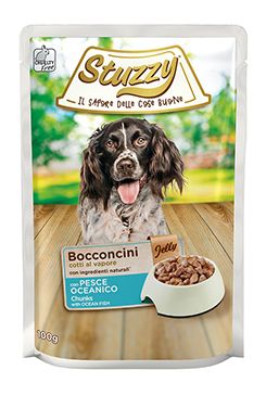 Kapsička pro psy Stuzzy Dog Adult je plná kousků masa vařeného v páře v lahodném želé.