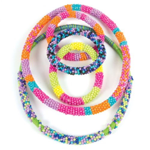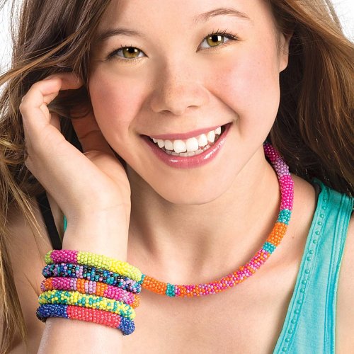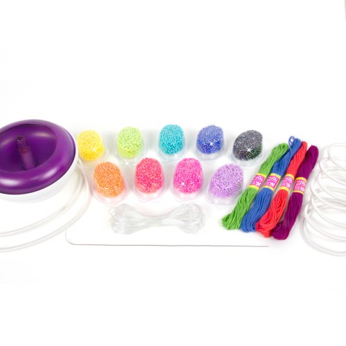 V balení jsou korálky různých barev, nádobka na korálky pro snadné návlékání, speciální háček, jemný vlasec a gumičky pro vytvoření až 7 náramků nebo až 2 náhrdelníků. Doporučený věk 8+