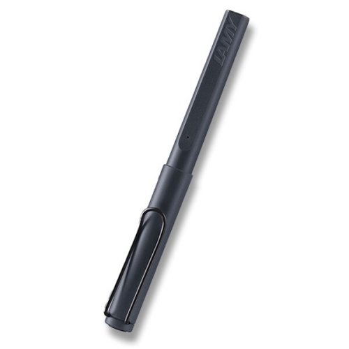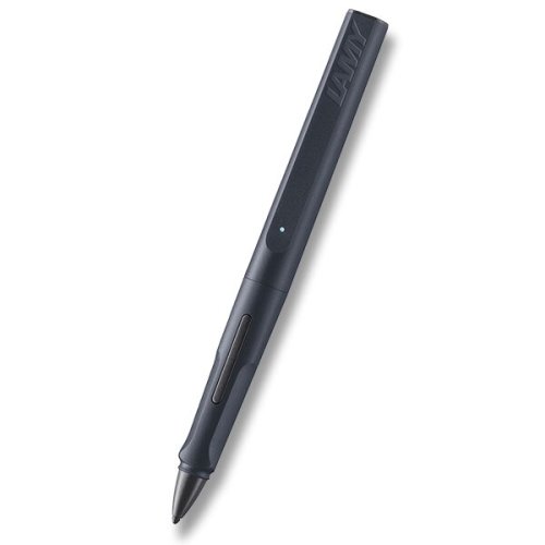 Stylus pen Lamy Safari Note+ v provedení Steel Black má tělo z matného plastu, nasazovací víčko a odpružený kovový klip poražený černou barvou. Úchopová zóna je ergonomicky tvarovaná v černé barvě.