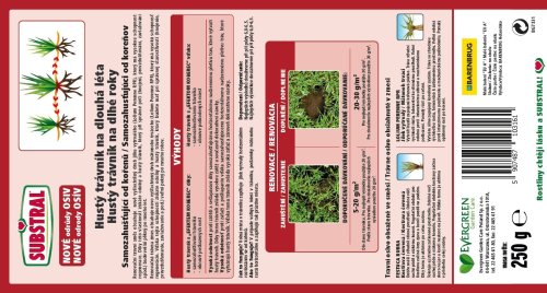 Parametry regenerační samozahušťovací travní směsi Substral 250 g: