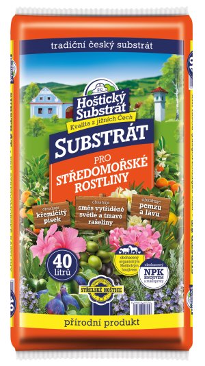 Substrát pro středomořské rostliny je vyroben ze směsi světlé a tmavé rašeliny, vhodné zeminy, prosetého jemně tříděného křemičitého písku, lávy a pemzy. K základnímu vyhnojení substrátu je použito kromě minerálního vícesložkového hnojiva s mikroprvky i organické hnojivo v podobě mikrogranulátu. Půdní reakce je upravena jemně mletým dolomitickým vápencem. Substrát je vzdušný a má dobrou propustnost pro vodu. Má optimální schopnost poutat vodu. Vhodný pro pěstování v nádobách i volné půdě. Po 4-6 týdnech dojde k vyčerpání zásob hnojiva v substrátu, proto je vhodné začít pravidelně přihnojovat. Velikost balení: 40 litrů.