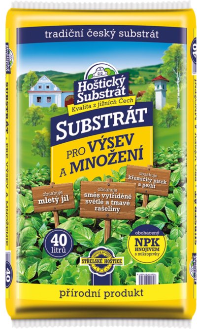 Substrát je určen speciálně pro výsevy a množení rostlin. Je vyroben ze směsi vytříděné světlé a tmavé rašeliny, prosetého jemně tříděného křemičitého písku, perlitu, přírodní jílovité složky a minerálního vícesložkového hnojiva s mikroprvky. Půdní reakce je upravena jemně mletým dolomitickým vápencem. Balení: 40 l.