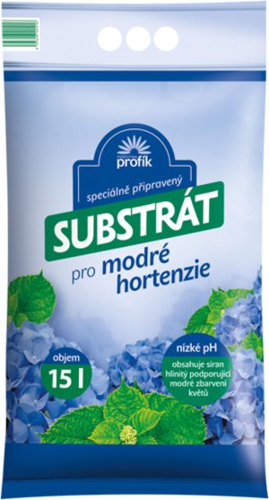 Substrát pro modré hortenzie je speciálně určen pro pěstování kyselomilných rostlin. Je připraven ze směsi vytříděné světlé a tmavé rašeliny, reakce substrátu je upravena vápencem. Substrát je obohacen hnojivem se základními i stopovými živinami potřebnými pro růst rostlin. Obsažený síran hlinitý a nízká hodnota pH (3,5 – 4,5) jsou velice důležité pro dosažení (udržení) modrého vybarvení květů. Balení: 15 l.