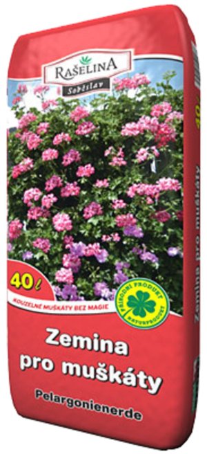 Zemina pro muškáty je hotovým půdním prostředím pro přesazování a pěstování muškátů - pelargónií, ale i ostatních balkónových květin s podobnými požadavky. Je vhodná k pěstování muškátů v květináčích, balkónových (okenních) truhlících i kameninových korytech. Zemina pro muškáty je vyrobena z kvalitní tříděné rašeliny s přídavkem minerálních hnojiv a vápenaté složky.