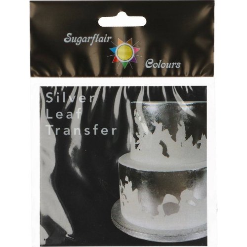 Transfer folie od Sugarflair má podobu stříbrného plátu. Rozměry 9,5 x 9,5 cm.