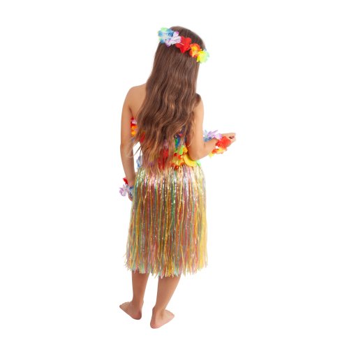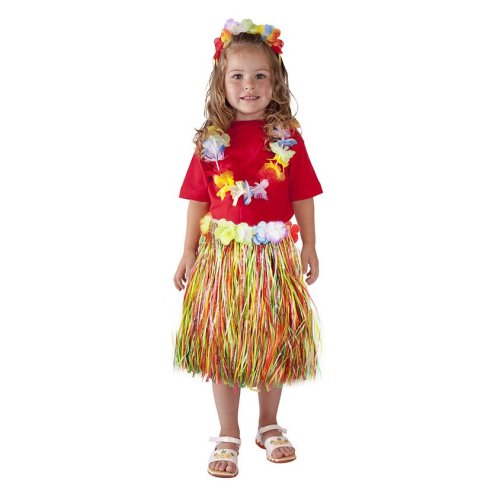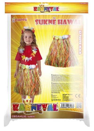 Parádní sukně ve stylu "Havaj" nesmí žádné slečně v šatníku chybět! Sukénka je určena pro holčičky ve věkovém rozmezí 3-10 let (104-150 cm). Tento senzační kousek je ideálním doplňkem na karneval nebo k typickému havajskému tanci "HULA". Sukně dlouhá 45 cm je vyrobena z tenkých igelitových pásků v různých barvách a zdobena barevnými okvětními lístky. Paráda! Staň se hvězdou karnevalového večírku díky této havajské sukni nebo si vytvoř celý havajský kostým! Balení obsahuje pouze sukni.