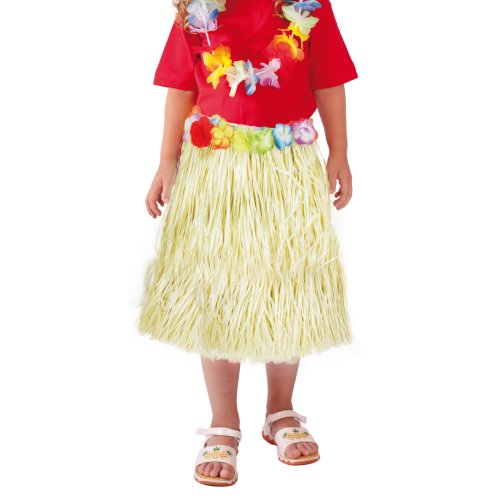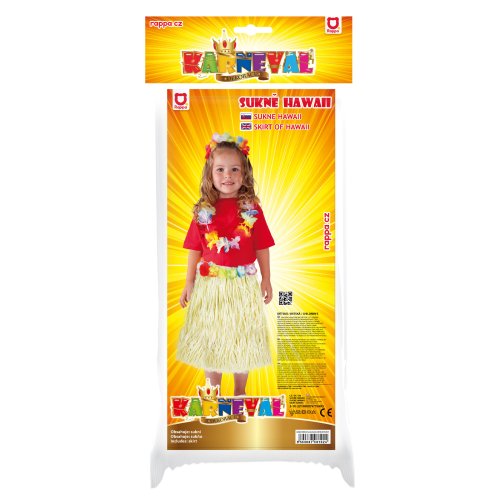 Senzační sukýnka ve stylu "Havaj" je ideálním doplňkem na karneval nebo k typickému havajskému tanci "HULA"! Sukýnka je určena pro holčičky ve věkovém rozmezí 3-10 let (104-150 cm). Sukně, dlouhá 45 cm, je vyrobena z tenkých igelitových pásků v přírodní barvě a zdobena barevnými okvětními lístky. Balení obsahuje pouze sukni.