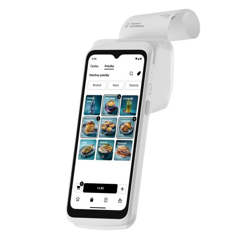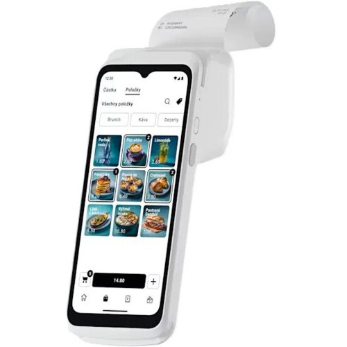 Rychlá a uživatelsky přívětivá obrazovka – stejně jako váš chytrý telefon. Na velkém HD displeji můžete snadno procházet položky, ceny a slevy. S odolným sklem Corning Gorilla Glass. Tiskněte potvrzení o platbě přímo ze zařízení. Zabudovaná tiskárna používá standardní 58mm role termopapíru, které snadno a rychle vyměníte. S dobíjecí baterií, která vydrží celou provozní dobu, můžete prodávat kdekoli – ať už jste v restauraci, v prodejně nebo v terénu.