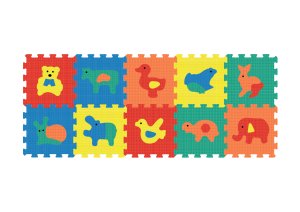 Měkké bloky Puzzle můžete rozložit a bezpečně si hrát s dětmi na podlaze. Bloky jsou měkké a odolné, můžete je použít i jako hrací podložku. Eva foam, ze které jsou vyrobeny je nezávadná a plně omyvatelná. 10 ks v balení. Rozměry jednoho kusu 32x32 cm Doporučený věk: od 10 měsíců