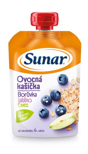 Ovocná kašička pro děti od značky Sunar s příchutí borůvka a jablko obsahuje vyzrálé šťavnaté ovoce s cereáliemi. Kapsička vhodná pro děti od uk. 6. měsíce jako ideální svačinka. Obsahuje lepek. Sunar kašička je ovocná kapsička pro děti kombinující šťavnaté ovoce s cereáliemi. Kašička je bez přídavku cukrů, obsahuje přidané vitaminy a minerální látky. Díky obsahu vybraných cereálií se skvěle hodí pro zavádění lepku do stravy. Vhodná pro děti od ukončeného 6. měsíce.