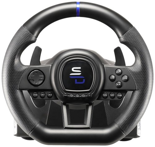 Volant s pedály SUPERDRIVE SV650 kompatibilní s herními konzolemi PlayStation (PS4, PS3), Xbox (One, X/S), Nintendo Switch nebo počítači. Díky své univerzálnosti si na realistické zážitky z jízdy užijete takřka na jakékoli platformě. Volant se vyznačuje na pohled elegantním designem a díky zvolené struktuře se pohodlně a pevně drží.
