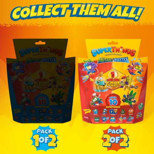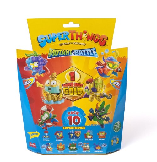 Chceš rychle začít nebo rozšířit svou sbírku SuperThings Mutant Battle? S tímto balením získáš 10 SuperThings – jeden z nich je zlatý (hrdina nebo padouch) a tři mají funkci změny barvy. Nezapomeň, že každý balíček je očíslovaný, takže můžeš získat obě zlaté postavičky bez opakování.SuperThings jsou běžné předměty proměněné v superhrdiny a superpadouchy. Žijí ve městě Kaboom City a každý SuperThing má svého rivala – najdi soupeřící dvojice a zkompletuj týmy. Akce je zaručena!Obsahuje:• 10 SuperThings (1 zlatý, 3 s funkcí změny barvy)