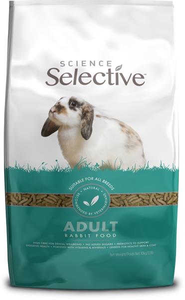Průměrný dospělý králík denně potřebuje přibližně 60–70 g krmiva Supreme Science Selective Rabbit Adult – dospělý králík. Krmiva řady Supreme Selective lze zvířatům podávat neomezeně dle chuti, je však nutné pravidelně kontrolovat tělesnou hmotnost a celkovou kondici zvířete. Zajistěte neomezený přístup k čerstvé vodě a senu.