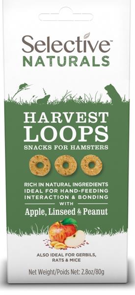 Zdravé přírodní pamlsky Selective Naturals ve tvaru kroužků pro křečky, potkany a další všežravé drobné savce. Ideální pro podávání z ruky, které sbližuje a pomáhá vytváření bližšího vztahu se zvířetem. Kroužky Harvest Loops s jablky, lněným semínkem a arašídy. Upečené z přírodních surovin v pekárně Supreme v srdci Suffolku.