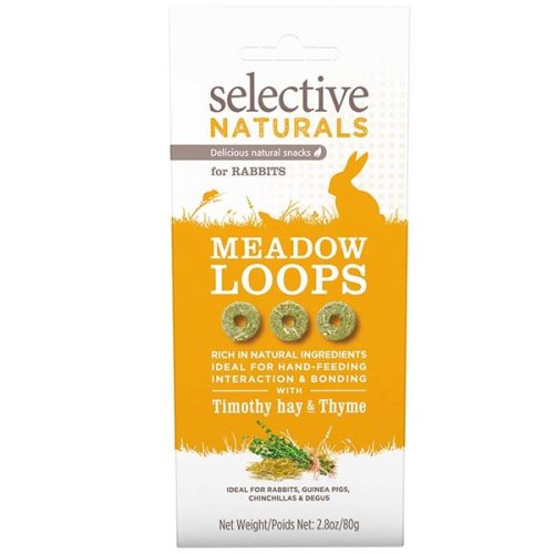 Zdravé přírodní pamlsky Selective Naturals ve tvaru kroužků pro králíky, morčata a další drobné savce. Ideální pro podávání z ruky, které sbližuje a pomáhá vytváření bližšího vztahu se zvířetem. Kroužky Meadow Loops s bojínkovým senem a tymiánem. Upečené z přírodních surovin v pekárně Supreme v srdci Suffolku. plné přírodních surovin nízký obsah tuků a vysoký obsah vlákniny bez přidaného cukru bez umělých barviv Analytické složky: Hrubá bílkovina 7 %, hrubý tuk 2 %, hrubá vláknina 14 %, vlhkost 11 %. Složení: Pšeničná mouka, mleté seno z bojínku lučního (11 %), mleté vojtěškové seno, mleté lusky rohovníku, hrášek, sušený tymián (4 %), sójový olej, lněné semínko.