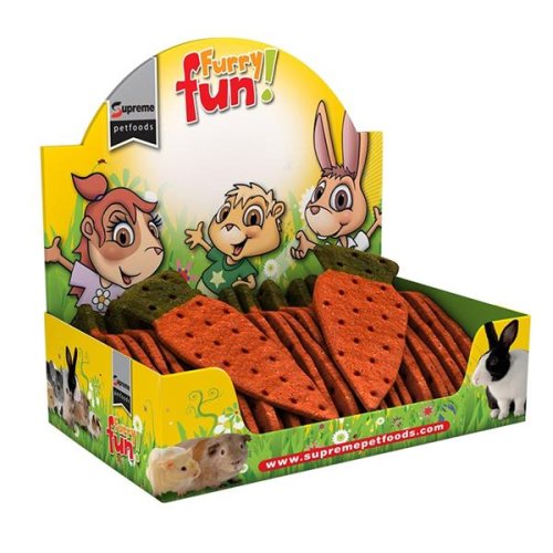 Pečené pamlsky ve tvaru mrkve pro hlodavce i jejich majitele. Chutné a křupavé sušenky s opravdovou mrkví pečené v pekárně certifikované pro výrobu potravin pro lidi. Balení 25 kusů.