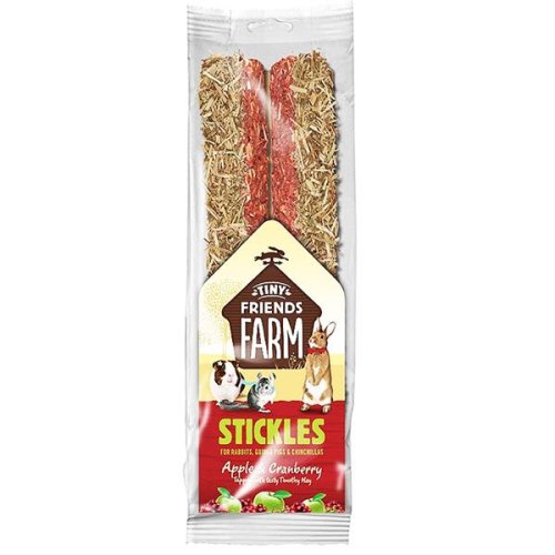Křupavé pečené tyčky s jablky a brusinkami sypané chutným bojínkovým senem jsou určené zejména pro králíky, morčata a činčily. Přírodní suroviny dodávají pamlskům přirozenou chutnost a jsou zdrojem vitamínů a minerálů, které posilují imunitní systém mazlíčků. Velké množství obsažené vlákniny podporuje správné trávení. Tyčinky stimulují hlodací instinkt a pomáhají v obrušování zubů. Pamlsek lze zvířeti zavěsit do klece pro zábavu a podporu přirozeného pudu shánění potravy. Pro zavěšení v kleci je tyčkou provléknutý jutový provázek (ekologicky šetrná alternativa k dříve používané plastové jehle). Vlastnosti pamlsků: