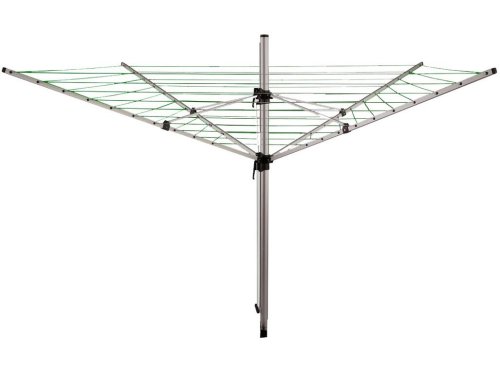 Venkovní zahradní rozkládací sušák vhodný na jarní a letní sušení prádla na zahradě s jednoduchým systémem uchycení, zároveň je odolný vůči rozmarům počasí. Plastový držák do země je součástí balení.