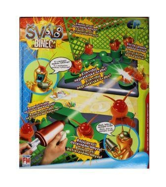 Švábbinec je nová společenská hra. Pozor! V kuchyni se rozmnožili švábi! Zlikvidujte je pistolí na hubení hmyzu! Akční hra pro dvě osoby. Zlikvidujte odporné šváby. Nabijte pistoli na hubení hmyzu, zamiřte a pal! Vyhrává lepší střelec. Švábi se skládají ze dvou částí: Hlavy a těla. Úkolem je co nejrychleji sestřelit všechny švábí hlavy.
