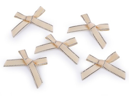 Svatební / dekorační rypsová mašlička s lurexovým okrajem - béžová světlá (10 ks)