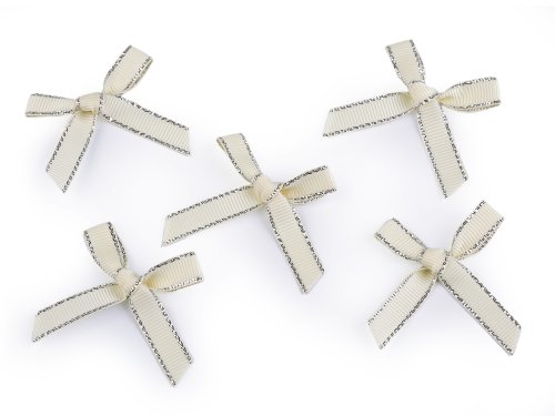 Svatební / dekorační rypsová mašlička s lurexovým okrajem - krémová nejsvět. (10 ks)