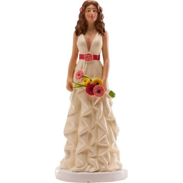 Svatební figurka na dort Nevěsta v romantických šatech. Výška 16 cm.