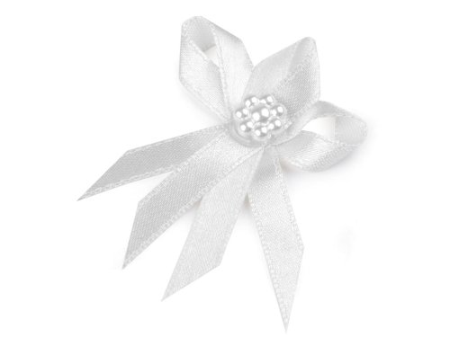 Svatební mašličky slouží ke svatebním účelům. Jsou velice kvalitní, ruční výroby. Skládají se ze dvou saténových stuh o šíři 7 mm, střed mají ozdobený perlovou květinkou. Využijete je k ozdobení klopy ženicha a svatebčanů. Mašličky můžete použít také k aranžování různých svatebních dekorací, k ozdobení svatebních oznámení, pozvánek, krabiček apod. Mašličky nemají špendlík k připíchnutí. [Vyrobeno v Thajsku.]