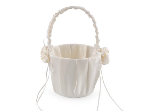 Saténový košíček je skvělým svatebním doplňkem pro malé družičky. Uvnitř košíčku se budou vyjímat plátky růží nebo květinová aranžmá. Košíček je vyrobený z pevnějšího plastu. Zdobí ho [saténové květy a stuhy.]