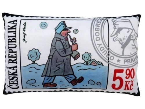 Měkký polštář s motivem dobrého vojáka Švejka od Josefa Lady, vhodný na cesty i jako dekorace. Materiál mikrovelur, obrázek tisk, náplň duté vlákno. Pratelný. Praní na 30°C, 100% polyester. Vyrobeno v ČR.