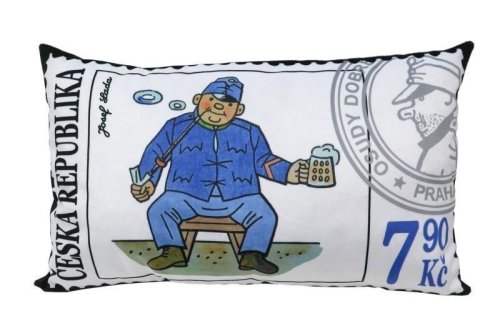 Měkký polštář s motivem dobrého vojáka Švejka od Josefa Lady, vhodný na cesty i jako dekorace. Materiál mikrovelur, obrázek tisk, náplň duté vlákno. Pratelný. Praní na 30°C, 100% polyester. Vyrobeno v ČR.