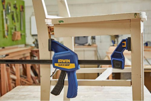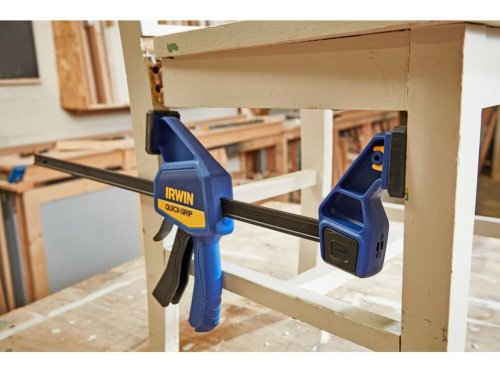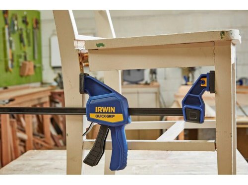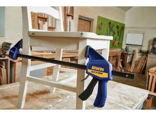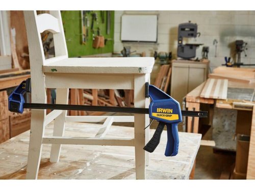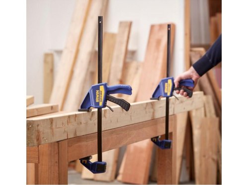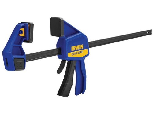 Jednoruční stolařská svěrka IRWIN® QUICK-GRIP® pro střední zatížení rovnoměrně rozloží až 136 kg trvalého upínacího tlaku. Je ideální pro aplikace krátkodobého přidržení a rychlého upnutí. Nové tlačítko QUICK-CHANGE™ nabízí snadno odnímatelné čelisti pro instalaci příslušenství nebo přeměnu v rozpěrku. Odnímatelné výkyvné čelisti a šetrné podložky - celoplošné podložky zajišťují rovnoměrné rozložení upínací síly. Jednoruční ovladač QUICK-RELEASE nový design úchytu a ovladače umožňuje jednoduché ovládání jednou rukou. Tepelně zpracovaný I profil z uhlíkové oceli s černým oxidovaným povrchem podporuje větší tlak s menším prohýbáním a flex pro mimořádnou odolnost.