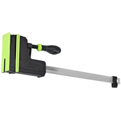truhlářská svěrka z řady STALCO PERFECT pro rychlé a přesné upevňování rámečků, dveří a dalších prvků čelisti se speciálním 3,5 palce širokým obložením pro rovnoměrným tlakem bez poškození lisovaného …